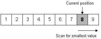 More importantly, after this pass through the list, the value 9 is now in its proper position.4 1 3 7 6 8 5 2 9