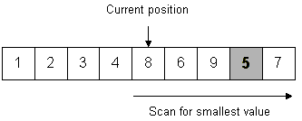 1 was found to be the smallest, so it is swapped with the value stored at the