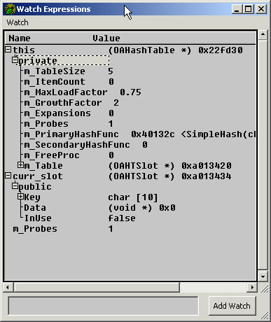 Watch window in gdb: