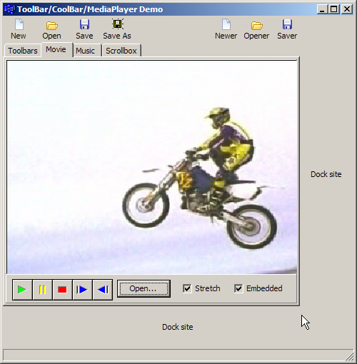 After the toolbar demonstration, I showed a simple way to play media files using the TMediaPlayer component, which is kind of a wrapper around Windows Media Player (an older version). There are much better media player components out there, but this was just a sample demonstration of how you might go about using one. For more information, see Chapter 10 Working with graphics and multimedia in the Developer's Guide.