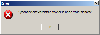MessageDlg(exe + " is not a valid filename.", mtError, btns, 0);