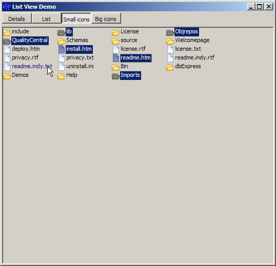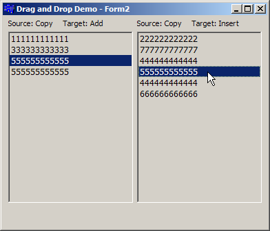 The example is a modification of the previous List view example. I added a second TListView component. You can drag and drop between the two List Views, as well as drag and drop within a single list view.
