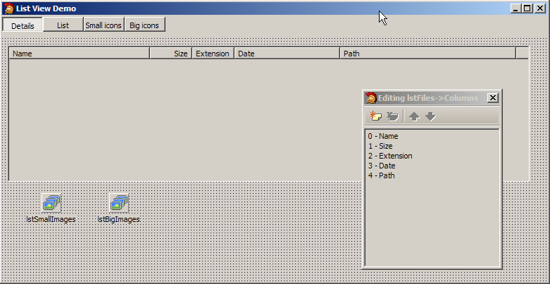 During this session I demonstrated a very powerful UI component called a list view (TListView). The list view is one of the most powerful UI components, as it makes it easy to display lots of information very easily and makes the information easily accessible. It can even be made simple so computer beginners are not overwhelmed by the amount of data that is available. Everyone is familiar with the List View (even though most don't realize it), as it is the central component in Windows Explorer.This is the form at design time: